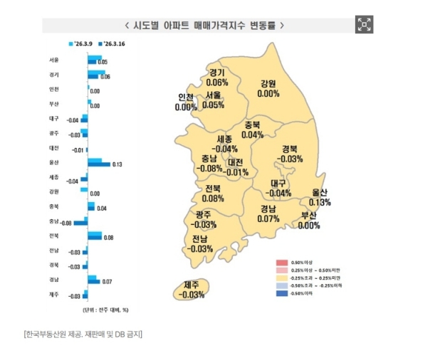 19ÀÏ Çѱ¹ºÎµ¿»ê¿øÀÌ ¹ßÇ¥ÇÑ 3¿ù ¼Â° ÁÖ(3¿ù16ÀÏ ±âÁØ) ÁÖ°£ ¾ÆÆÄÆ® °¡°Ý µ¿Çâ¿¡ µû¸£¸é ¼¿ï ¾ÆÆÄÆ® Æò±Õ ¸Å¸Å°¡°ÝÀº Á÷Àü ÁÖ ´ëºñ 0.05% ¿Ã¶ú´Ù.