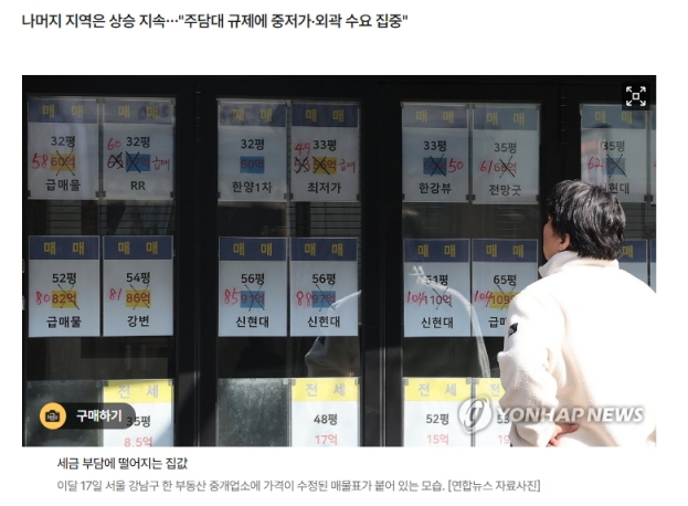 Àü¿ù ´ëºñ °¡°ÝÀ» Áö¿ªº°·Î º¸¸é °³² 3±¸¿Í ¿ë»ê±¸´Â 1.27% Ç϶ô, ÇѰº§Æ® 7°³ ±¸´Â 0.09% Ç϶ôÇß´Ù. ÀÌ Áö¿ªµéÀ» Á¦¿ÜÇÑ °³²Áö¿ª 4°³ ±¸´Â 1.55% »ó½Â, °ºÏÁö¿ª 10°³ ±¸´Â 1.05% »ó½ÂÇß´Ù.