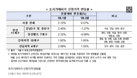 ½Ã´Â "1¿ù ¸» ´ÙÁÖÅÃÀÚ µîÀ» ´ë»óÀ¸·Î ÇÑ ±ÔÁ¦ °È ¿¹°í°¡ º»°Ý ¹Ý¿µµÇ±â Àü ³ôÀº »ó½Â¼¼¸¦ º¸¿´´ø 2025³â 12¿ù°ú 2026³â 1¿ù ÅäÁö°Å·¡Çã°¡ ½Åû °¡°ÝÀÌ ½ÃÂ÷¸¦ µÎ°í ½Ç°Å·¡ °¡°Ý¿¡ ¹Ý¿µµÈ ¿µÇâÀ¸·Î º¸ÀδÙ"°í ºÐ¼®Çß´Ù.